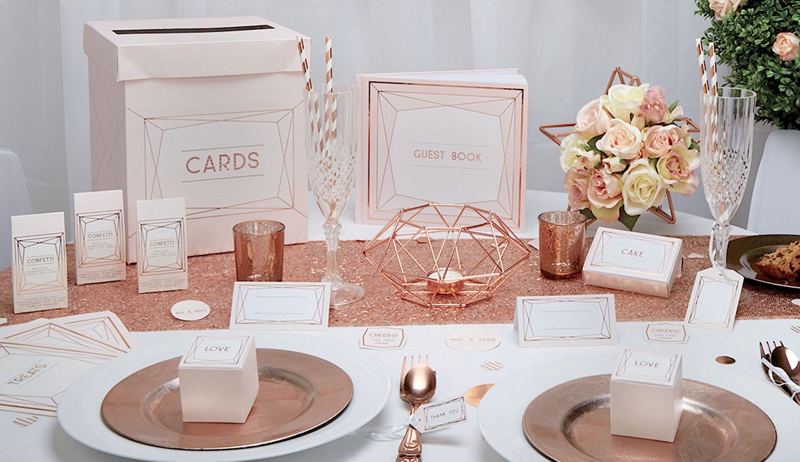 Gjestebok fra temaet «Geo Blush» i pudderrosa og roségull.