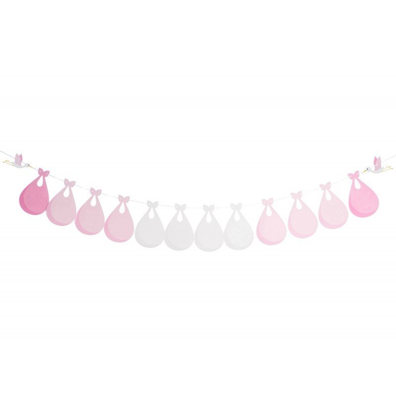 Girlander - Babyshower - Hvit/Lys rosa - Storker