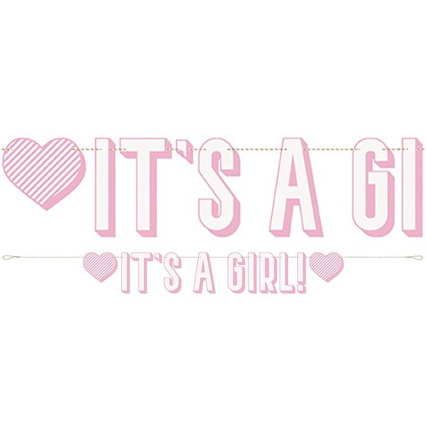 Superfin girlander i rosa med teksten - Det er en jente.