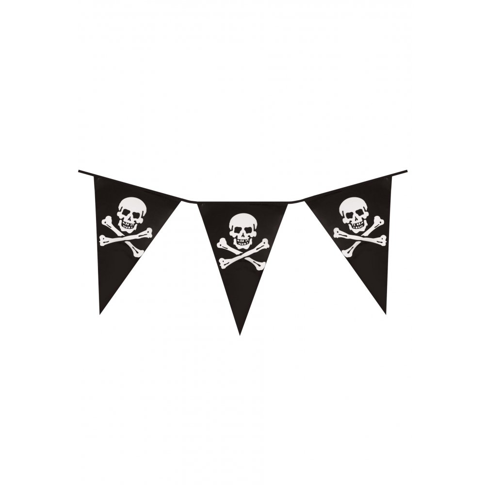 Svarte vimpler med hodeskaller - perfekt til piratfest eller kanskje en Halloween-fest!