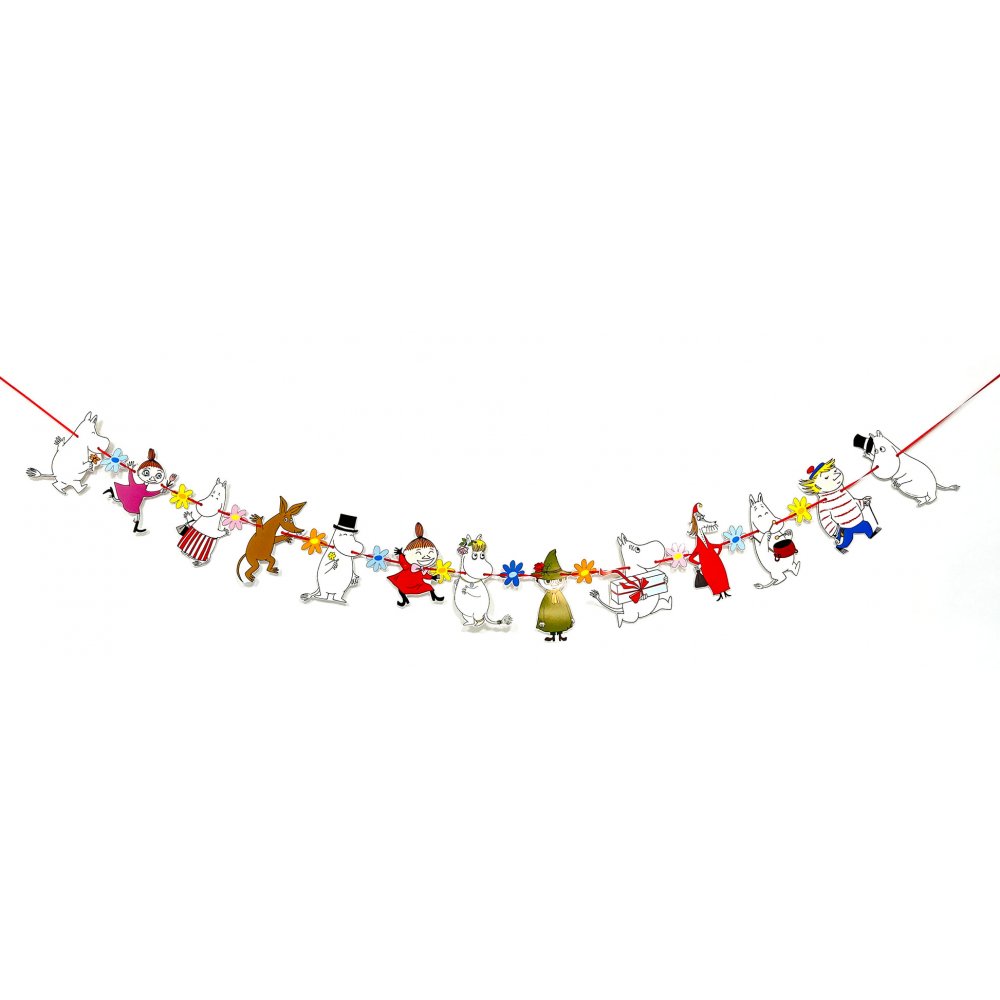 En festlig girlander med motiver fra Tove Janssons elskede Mummiverden. Girlanderen er 2 meter lang og inneholder flere forskjellige figurer som gir en herlig atmosfære til festen eller feiringen din.