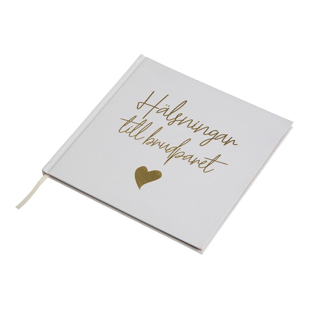 Gjestebok med teksten Hilsen til brudeparet i gullmetallic. Et superfint minne fra den store dagen din!