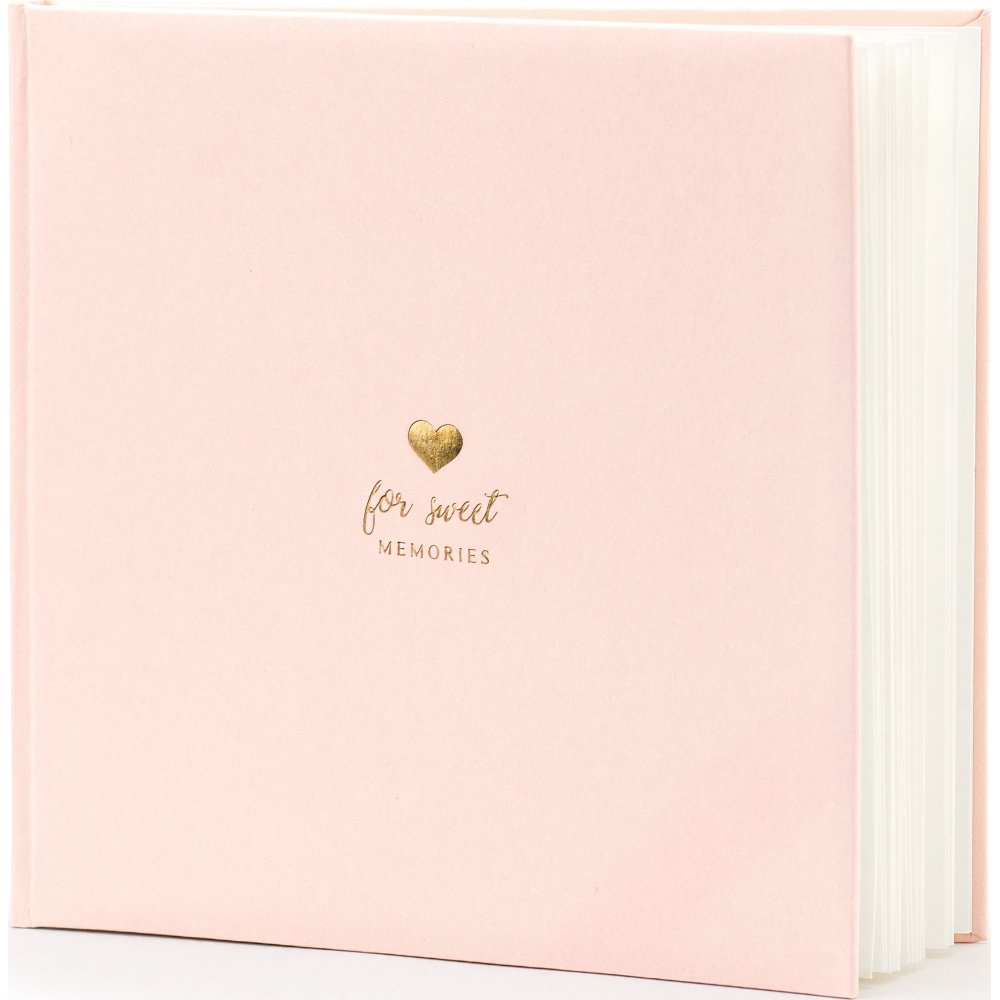 Søt gjestebok med pudderrosa omslag og roségulltekst - «For søte minner».