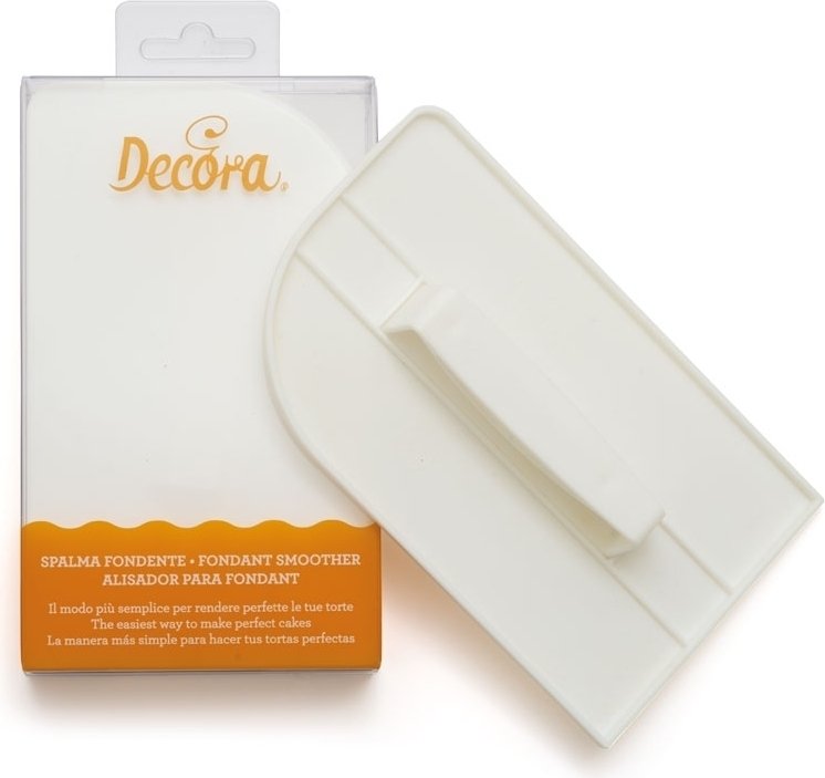 Plastspade med håndtak fra Decora gjør det enklere å få marsipanen eller sukkerpastaen skikkelig glatt på kaken. Perfekt med tre forskjellige typer hjørner: ett skarpt, ett litt avrundet og ett rundt. Et must for enhver hjemmebaker og kakedekoratør!