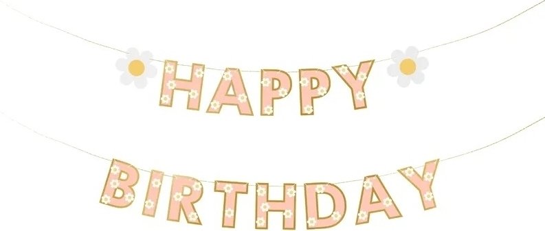 Nydelig vimpel med blomster og teksten «Gratulerer med dagen». Så fint til bursdagsfest.