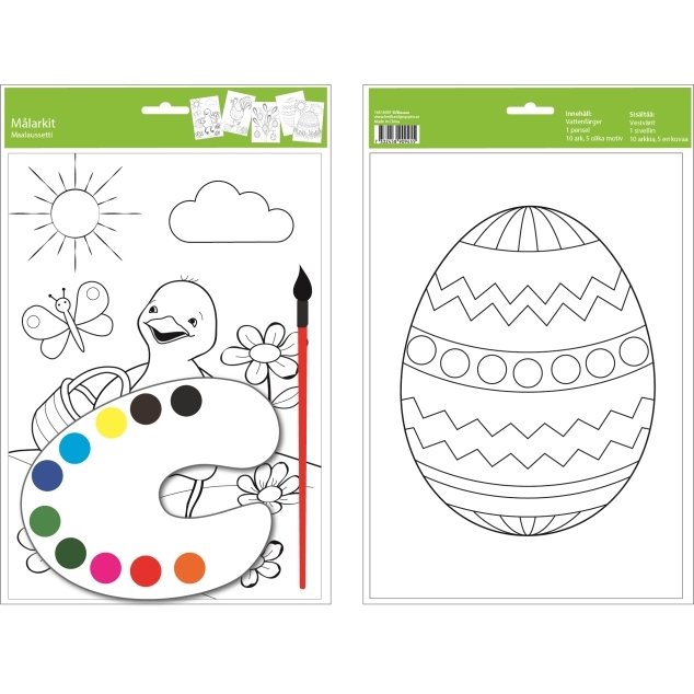 10-pakning med påskebrev i størrelse A4 (5 forskjellige motiver) med tilhørende akvarellmaling og pensel.