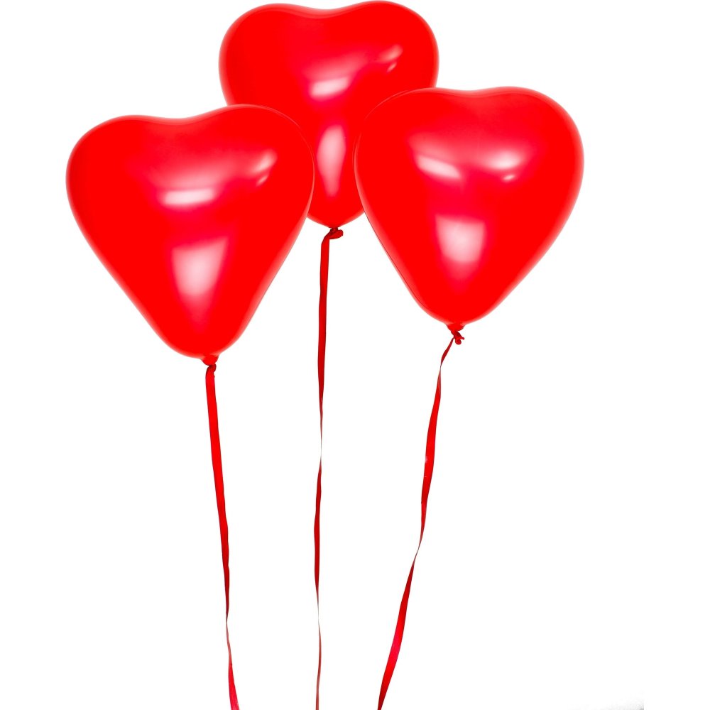 Røde hjerteformede ballonger. Ca. 30 cm stor når den er oppblåst. Flott til å henge opp i bunter eller fylle med helium.