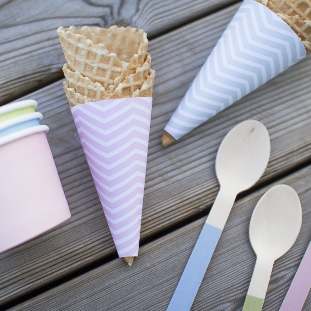 Mal for å dekorere iskremkjeks med personlig innpakningspapir.