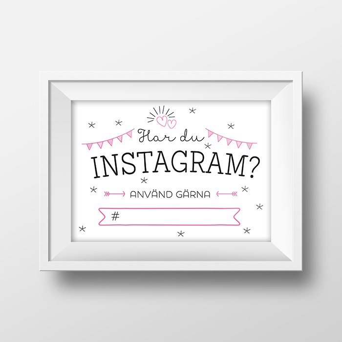 Perfekt for de som ønsker å lage sin egen emneknagg på bryllupet eller festen for å samle alle bildene under. Ram inn, heng opp eller vis frem på bord og i festlokalet.