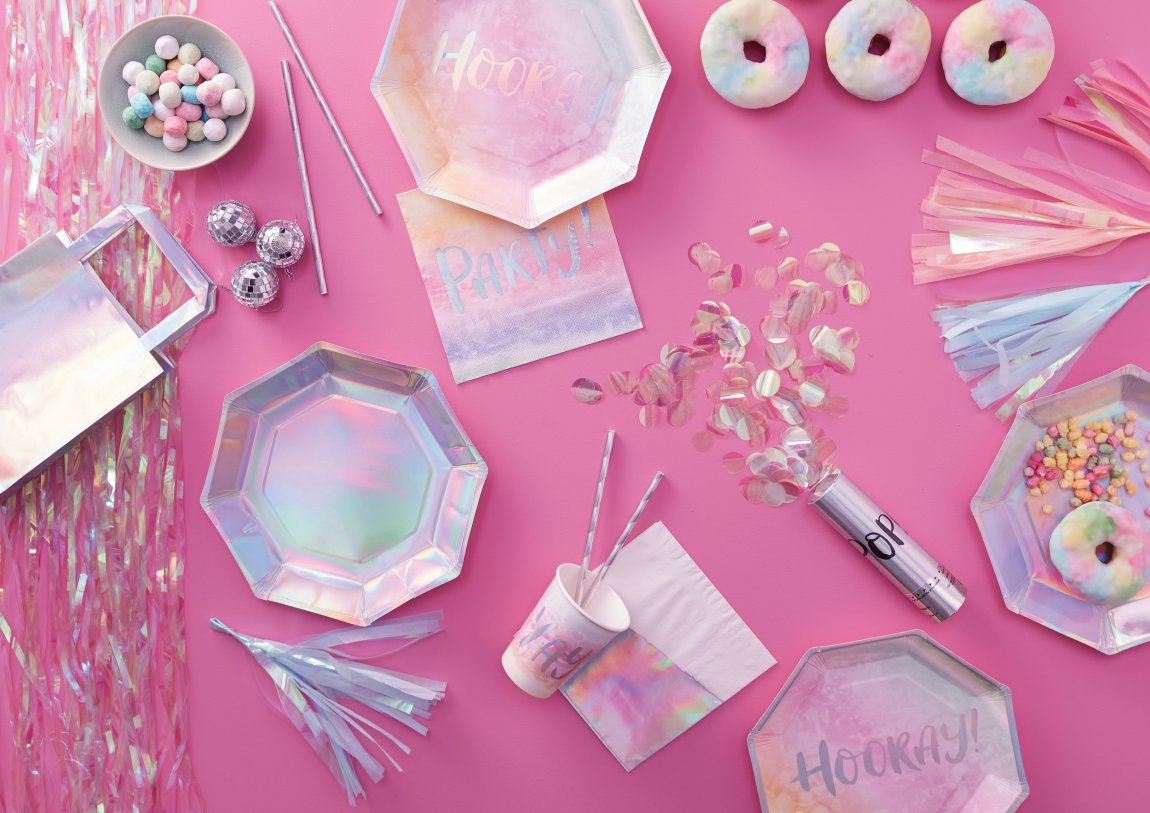 Draperi i skimrende materiale - perfekt for de forskjellige populære iriserende temaene som er tilgjengelige i butikken!