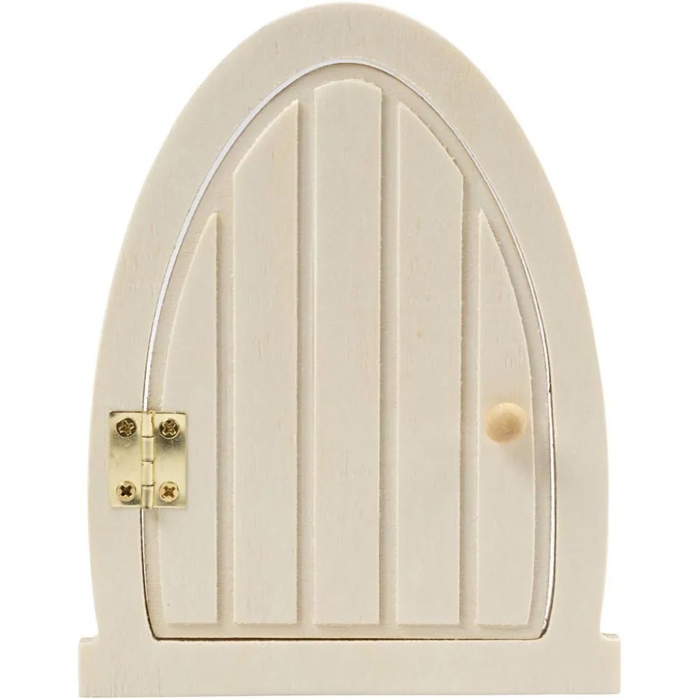 Rund plankedør med karm, avrundet topp, åpningsbar. Så søtt når julenissen eller påskeharen flytter inn!