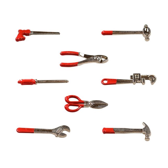 8-pakning med småverktøy, perfekt som en detalj til julenissens innflytting.