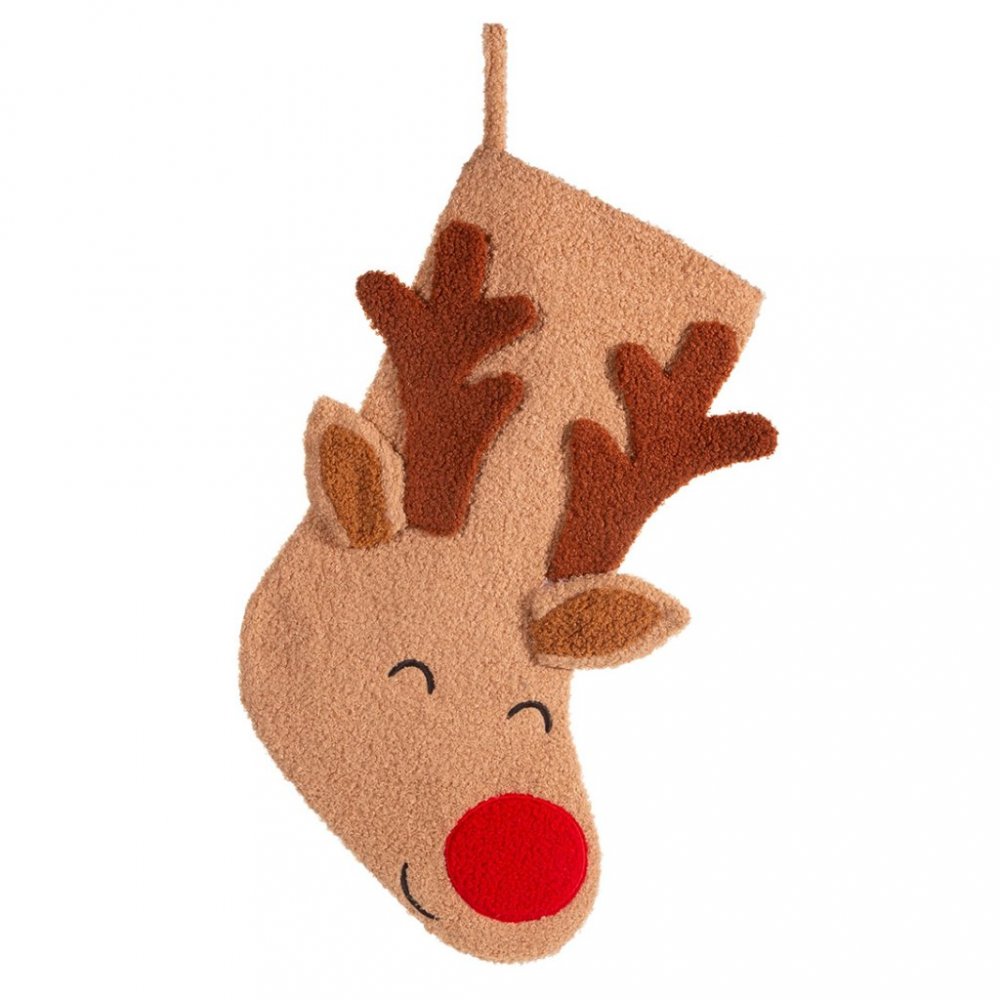 Den søteste julesokken formet som Rudolfs ansikt. Julestrømpen blir en perfekt detalj på barnerommet i julen og vil være det perfekte stedet for den første julegaven.