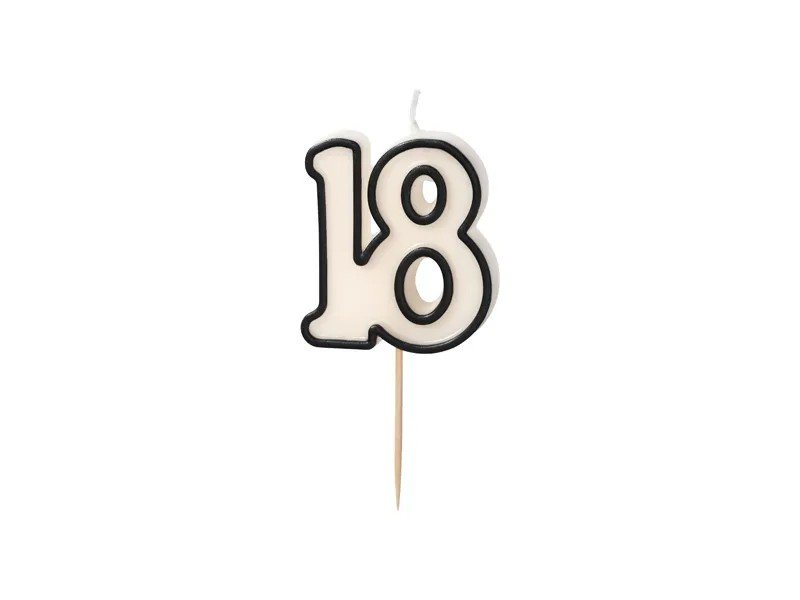 Fint svart-hvitt talllys - perfekt til en 18-årsdag!