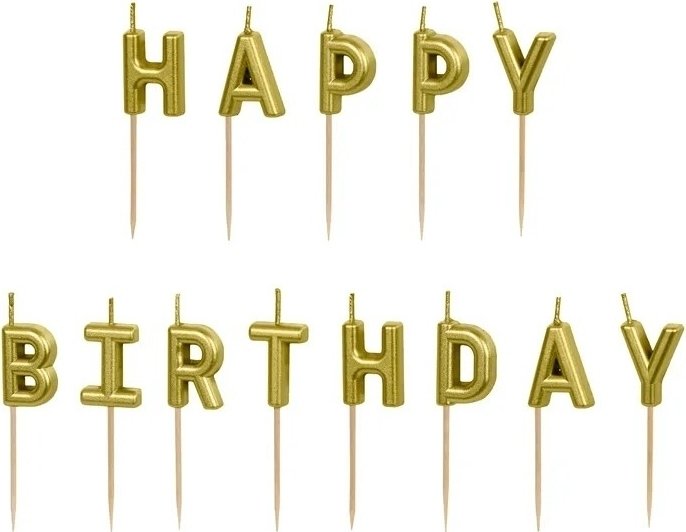 Kakelys «Gratulerer med dagen» i gull. Supersøt på en bursdagskake.