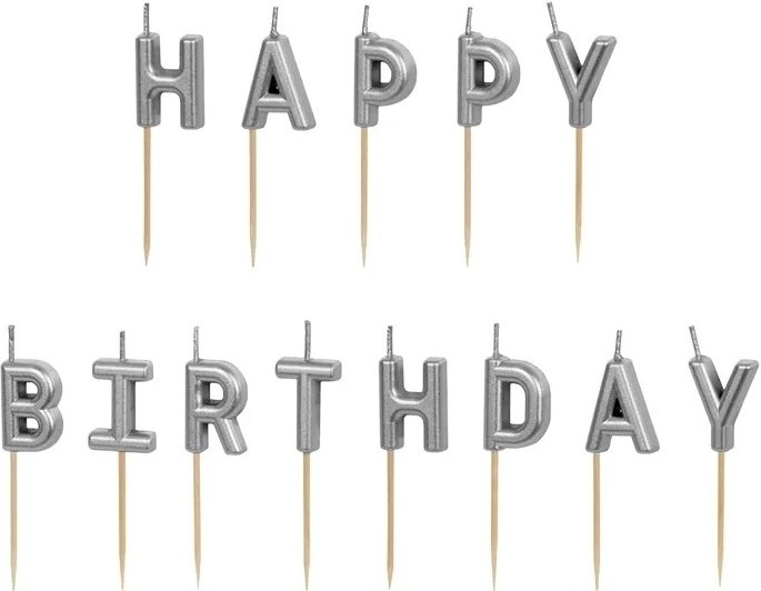 Kakelys «Gratulerer med dagen» i sølv. Supersøt på en bursdagskake.
