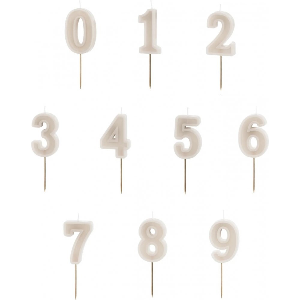 Grå bursdagslys i tall på en trepinne.