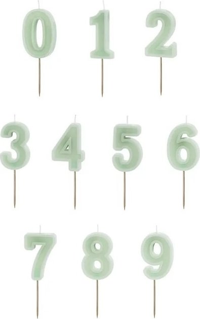 Grønne bursdagslys i tall på en trepinne.