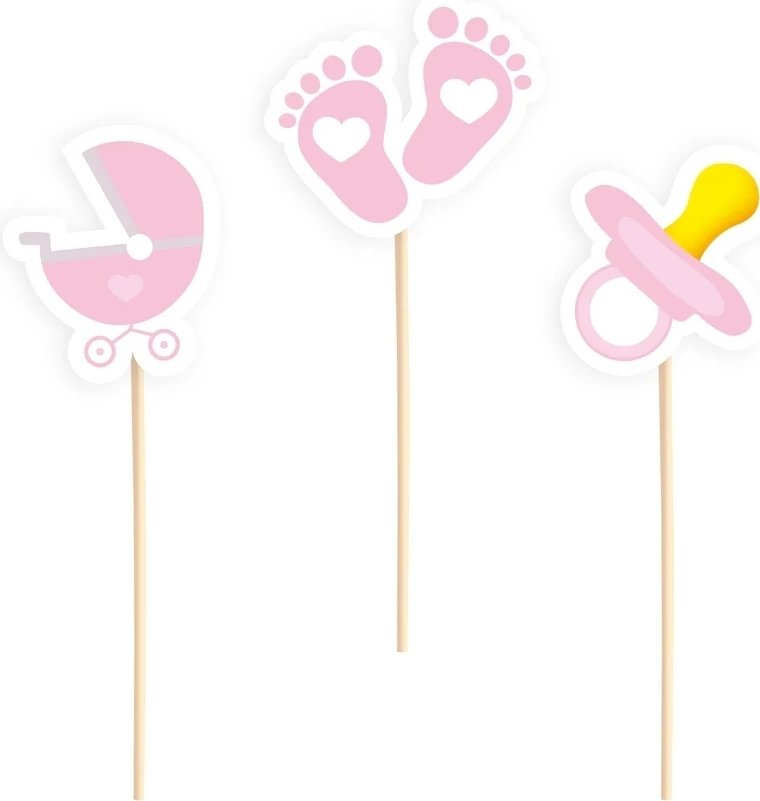 Kakepinn - Babyshower - Rosa - 6-pakning
