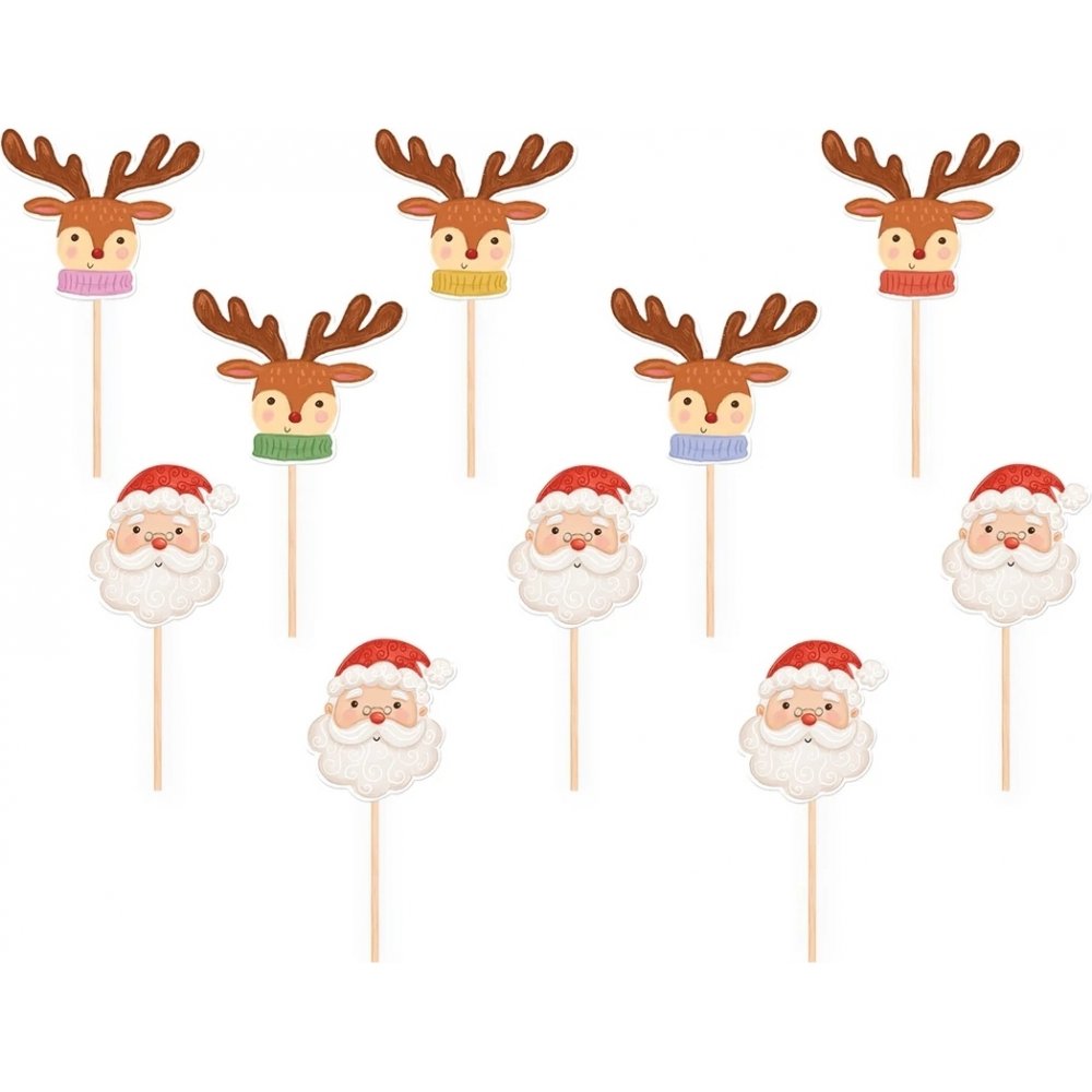 Kakepinn - Julenissen og reinsdyr - 10-pakning