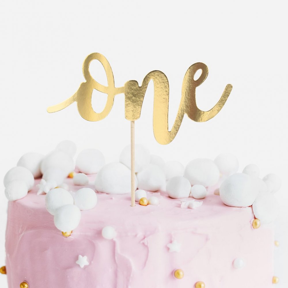 Fin kaketopper i gull, så søt på kaken eller fruktfatet på ettårsfesten.