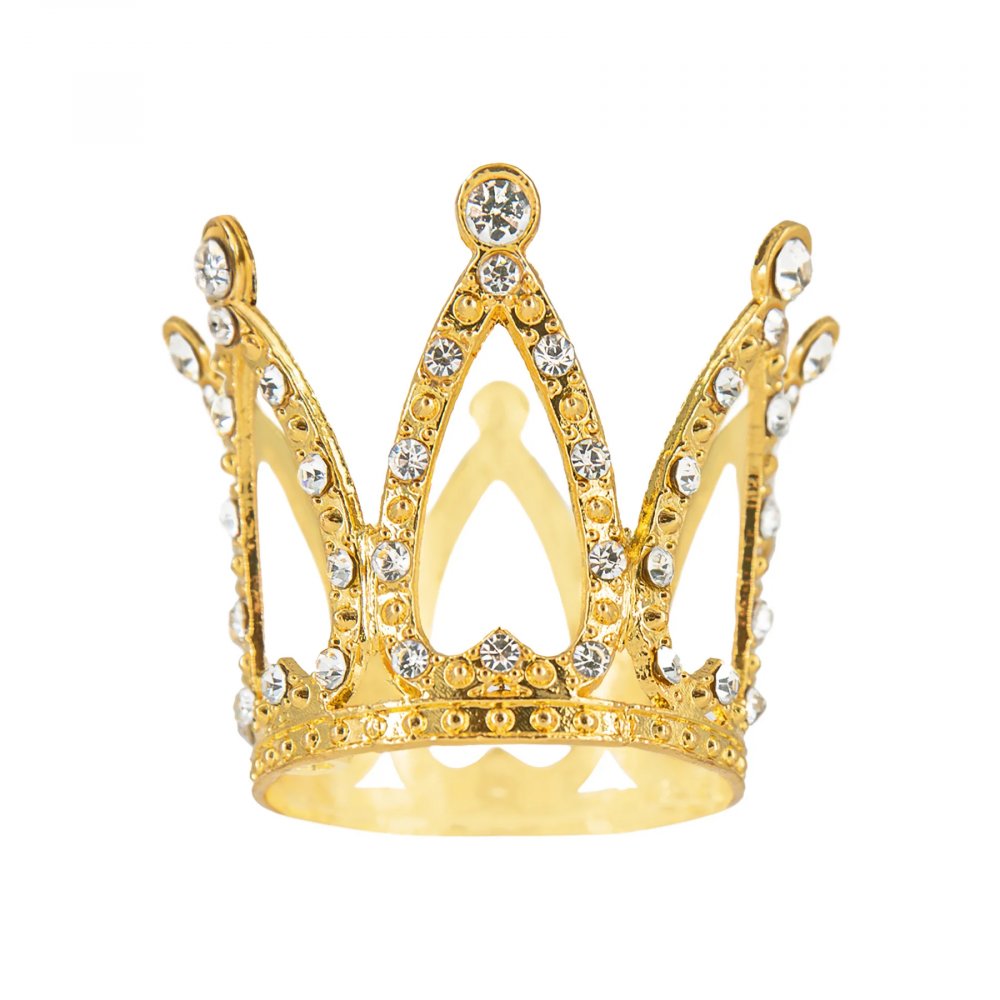 Kaketopper - Liten - Krone - Gull med sølvkrystaller - 3 cm