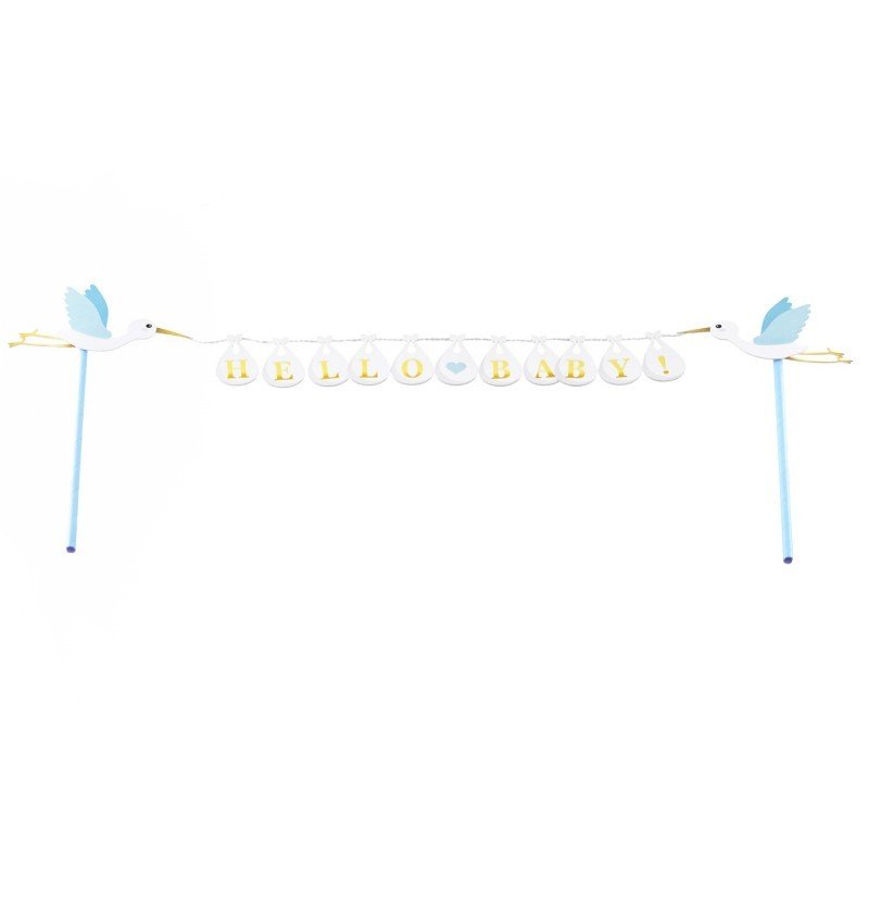 Kaketopper - Stork - Hello Baby - Blå/Hvit/Gull