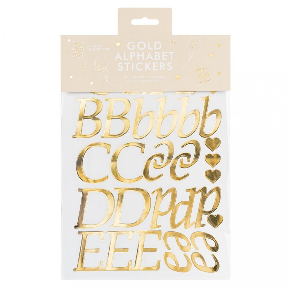 Klistremerker med 5 ark som inneholder bokstaver i gull. Perfekt som dekorasjon til ballonger eller andre fine DIY-prosjekter.
