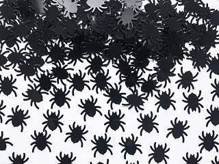 Konfetti formet som små, svarte edderkopper.