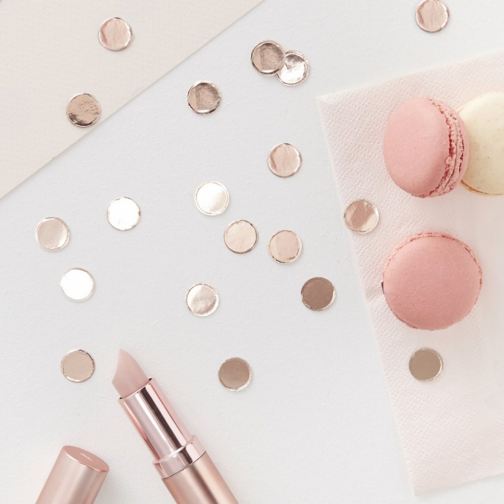 Rund konfetti i roségull. Én pakke inneholder 14 gram.