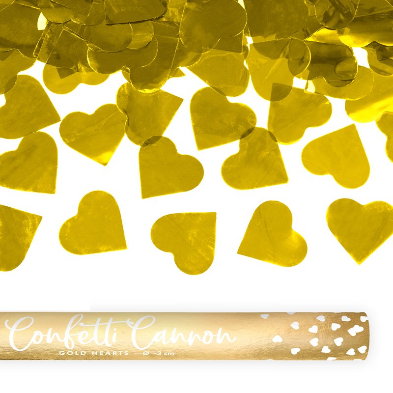 Gullkonfettikanon med gullhjerter som vil gjøre festen ekstra spesiell!