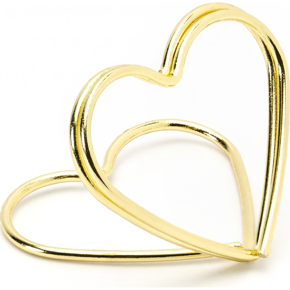 10-pakning med gullfargede kortholdere formet som små hjerter.