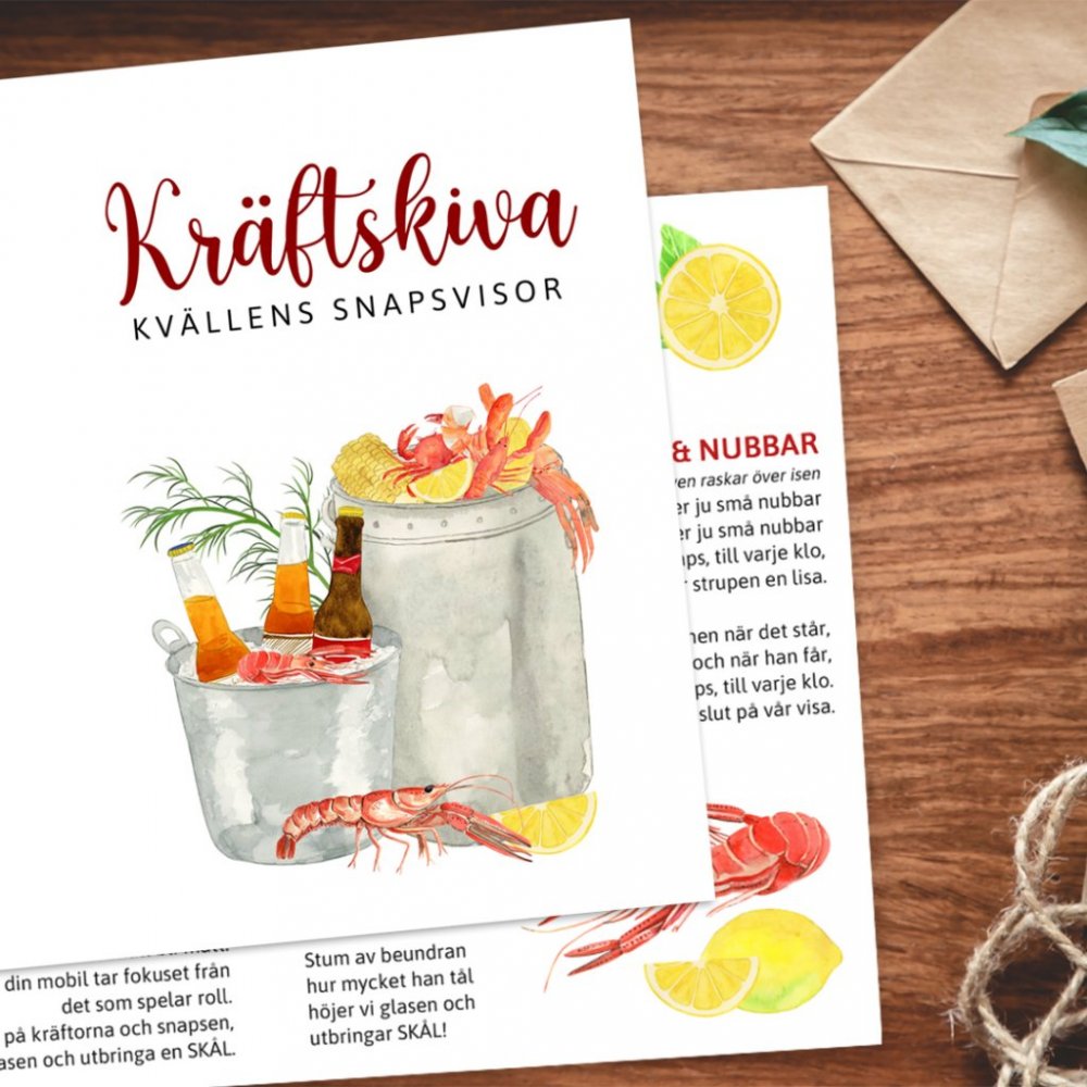 6-pakning med sanghefter til krepsalbumet med 6 forskjellige snapsanger. Supermorsomt til festen og fint å pynte bordet med.