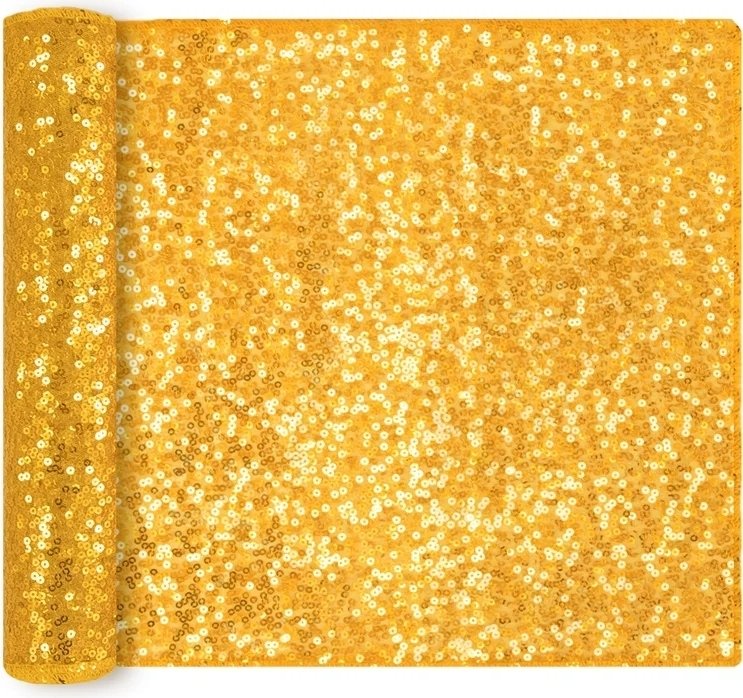Denne vakre løperen vil ta borddekningen din til neste nivå! Gyllen og glitrende og perfekt å kombinere med andre duker.
