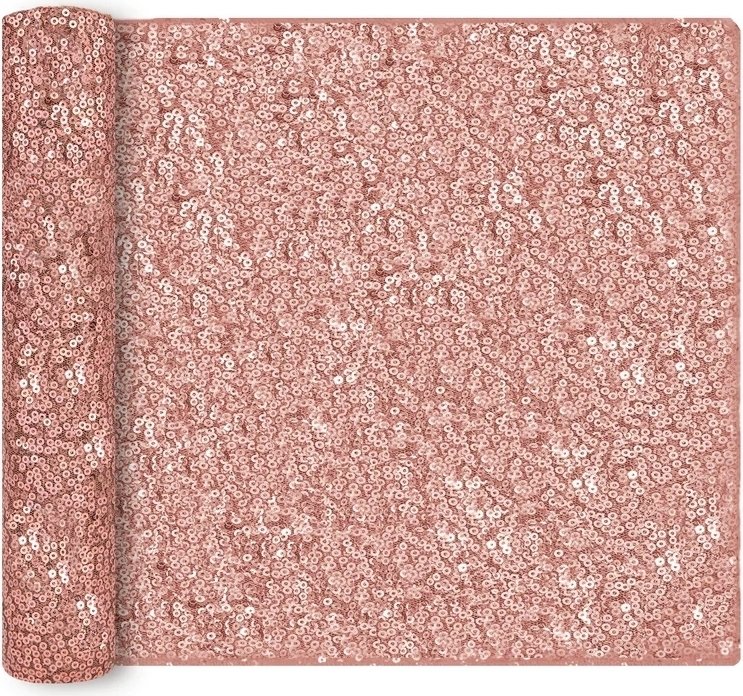 Denne vakre løperen vil ta borddekningen din til neste nivå! Glitrende i roségull og perfekt å kombinere med andre duker.
