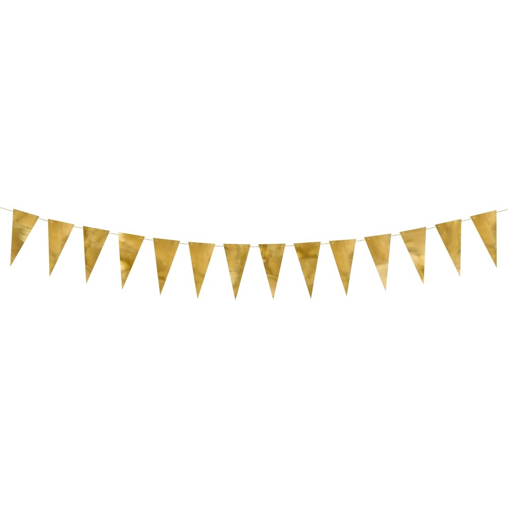 Liten pappvimpel i gullmetallic. En side i hvit papp.
