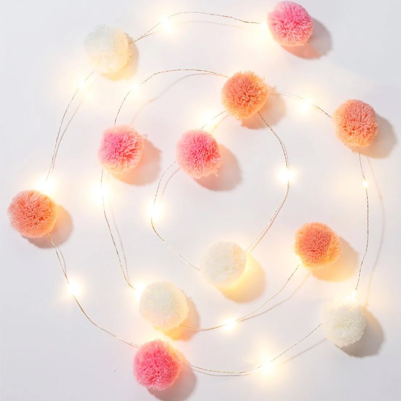 Skap en koselig atmosfære på barnerommet med denne supersøte lyslenken med 20 LED-lys på 2 m og fine pomponer i rosa og hvitt. Også superfin som pynt på festbordet.