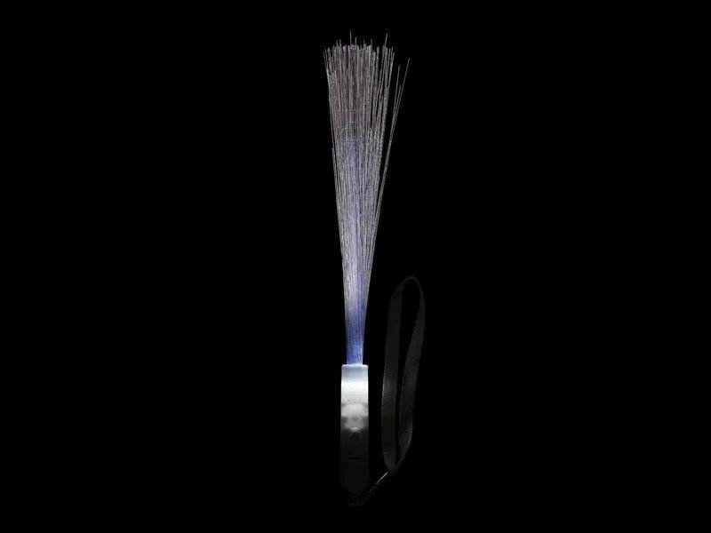 LED fiberoptisk stang i hvitt , lengde 26 cm . Staven avgir hvitt lys og har 3 lysmoduser : konstant lys, sakte blinking og rask blinking. Leveres med håndleddsstropp og drives av 3 × AG3-batterier (inkludert).