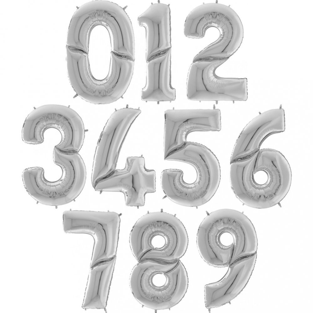 Mega tallballonger i sølv (tall 0-9) hele 1,64 m høye - så kraftige for festen!