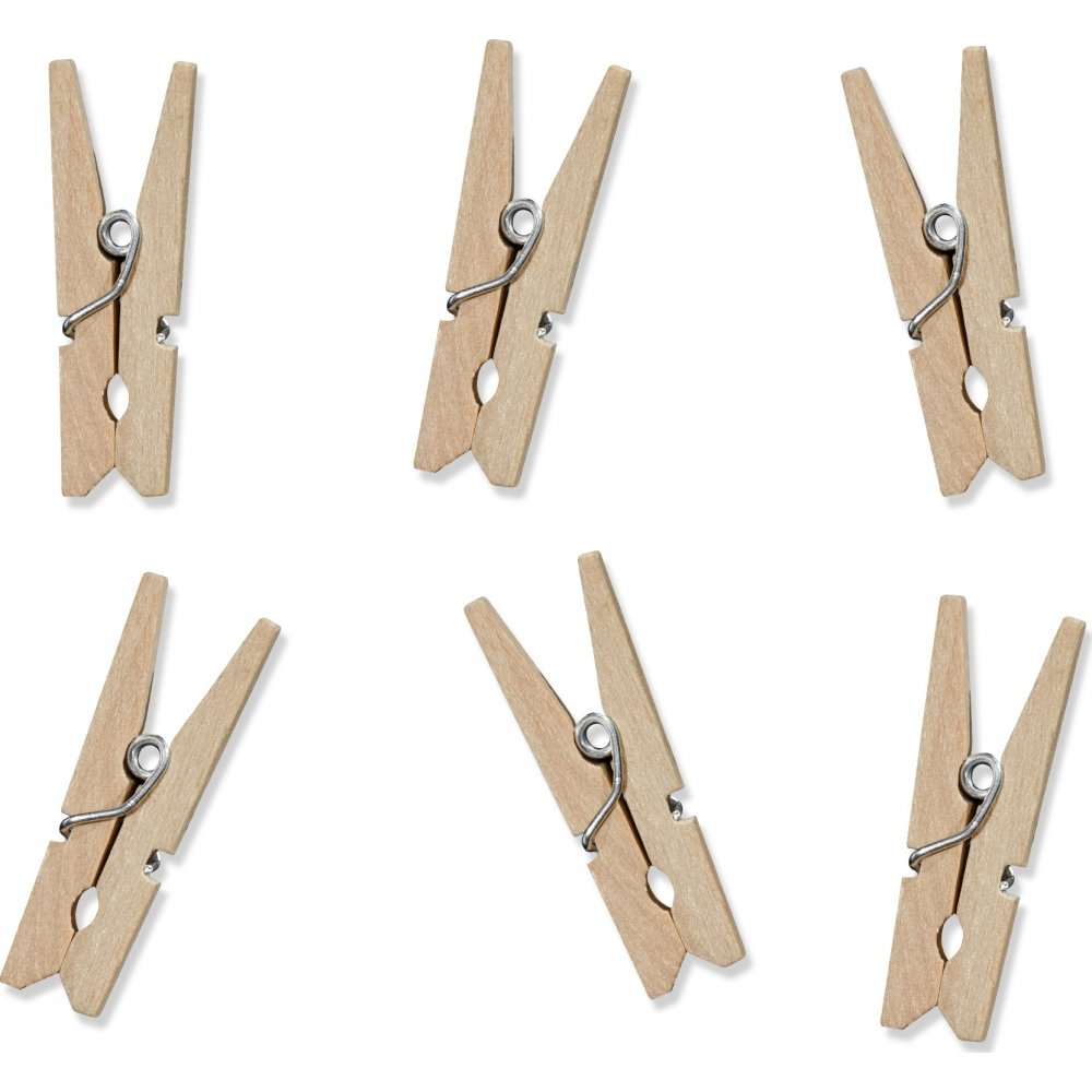 20-pakning med mini klesklyper i tre.