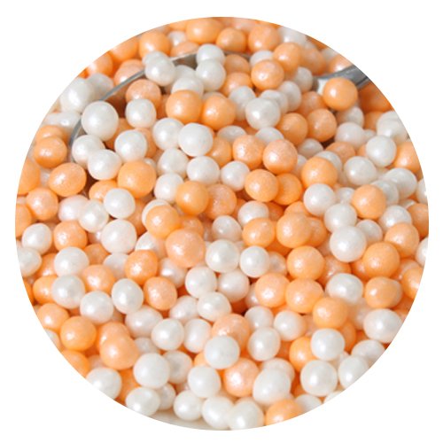 Myke sukkerperler med perlemorseffekt i aprikos og hvitt. Perlene er myke og passer også til...