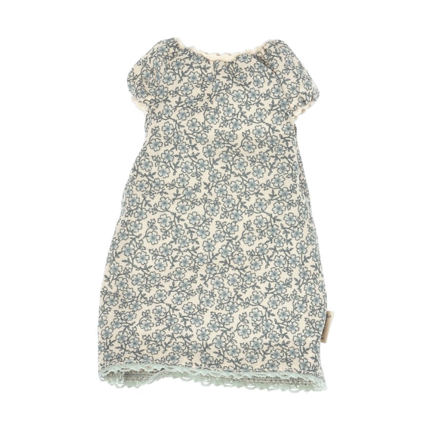 Veldig fin nattkjole i blått med blå blomster - passer til Maileg-kaniner i størrelse 2.