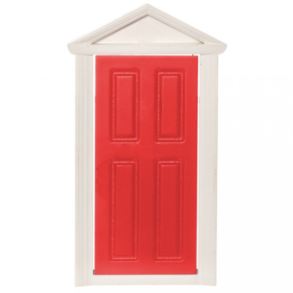 Robust nisseport som kan åpnes i rødt, laget av tre. Så hyggelig til julenissens innflytting.