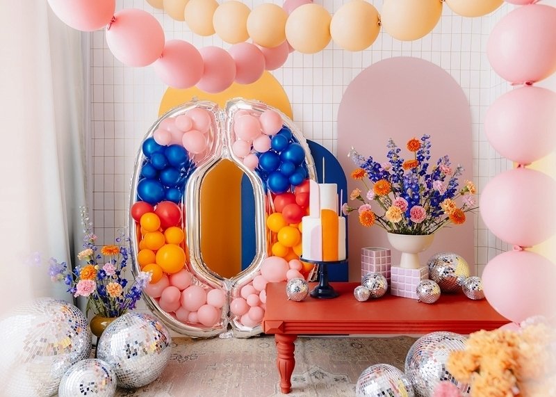 Sølvfarget ballongramme som er fylt med mindre lateksballonger. En ny trend som er populær til bursdager og fester. Enkel montering selv, blås opp rammen og fyll den med ballonger! Selges enkeltvis, og du velger mellom tallene 0-9.