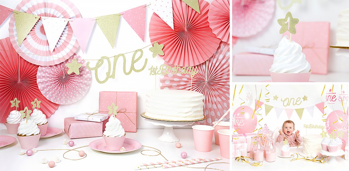1-årsdag - Rosa/Gull - 5-pakning