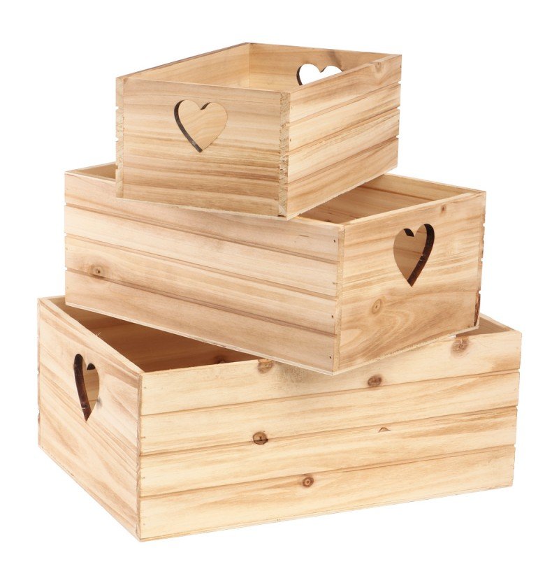 Fine oppbevaringsbokser i 3 forskjellige størrelser. Brukes til oppbevaring av bøker, småting osv., eller til bryllup når de er nyttige til mange formål, som for eksempel oppbevaring av risgrøtkjegler til kirkealteret!