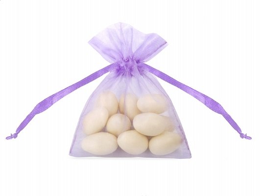 10-pakning med lys lilla organzaposer. Perfekt til å legge gjestegaver/gaver i eller fylle med bryllupsris og dele ut til gjeste
