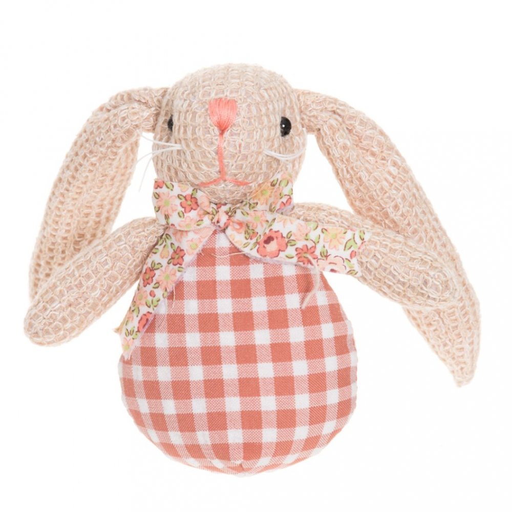 Supersøt påskehare i rutete antrekk med blomstrete sløyfe.