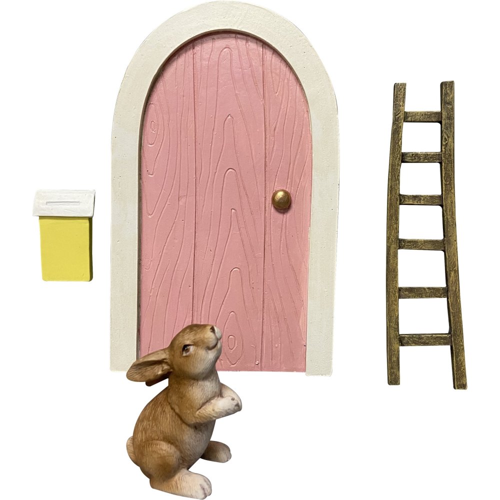 En søt rosa dør til påskeharen! Inkluderer dør, stige, postkasse og selveste påskeharen!