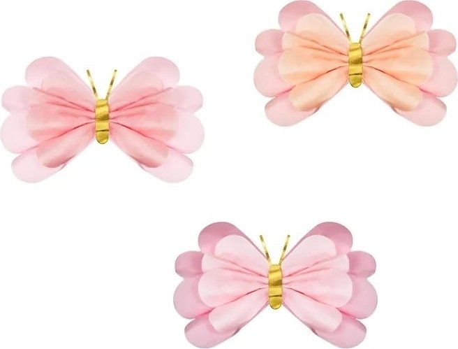 Papirdekorasjoner - Rosa store sommerfugler - 3 stk